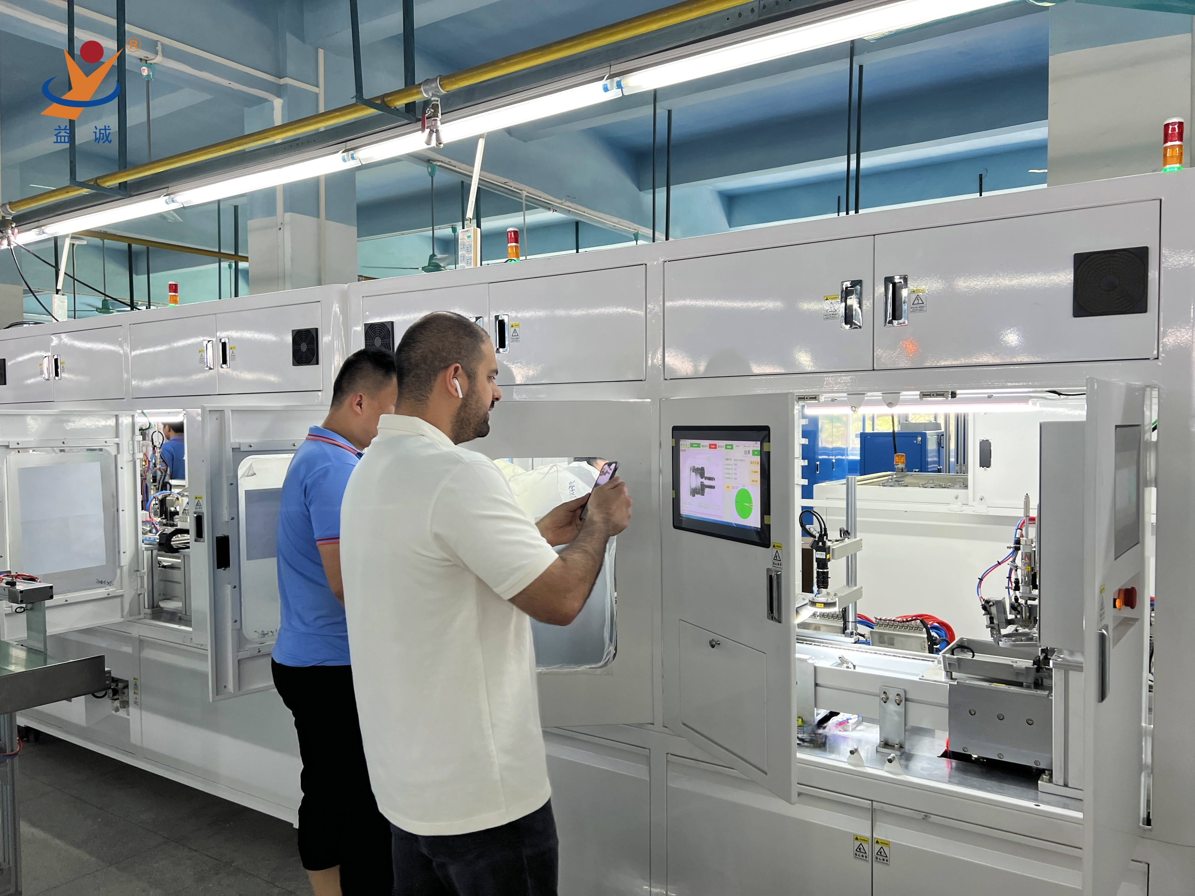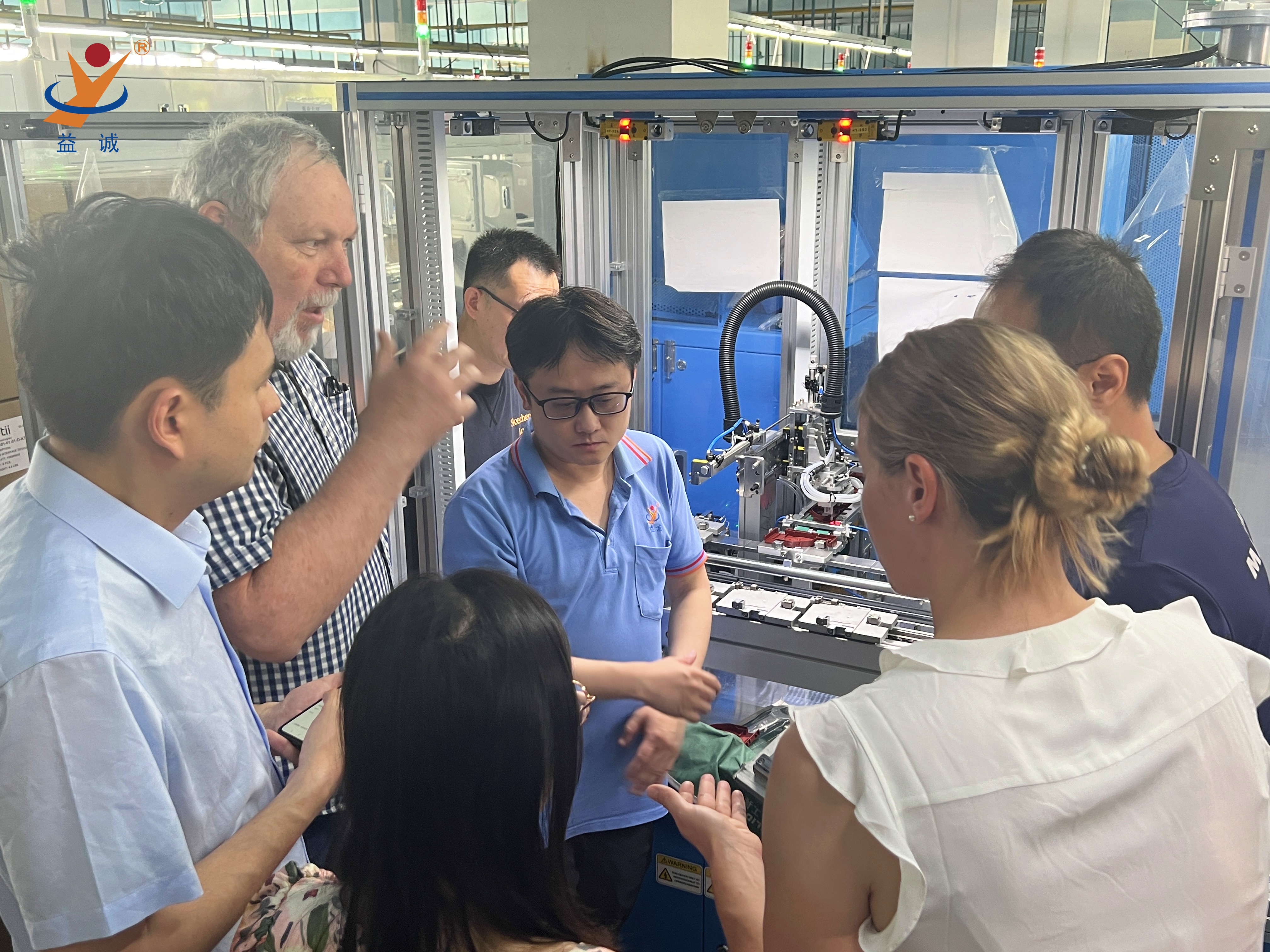 近日,来自美国、法国、德国、韩国、越南等国家的多批海外客户团队莅临益诚自动化,对益诚精心研制的高端智能自动化制造设备进行验收,并进行了深度技术交流,对未来更多领域的合作进行洽谈。